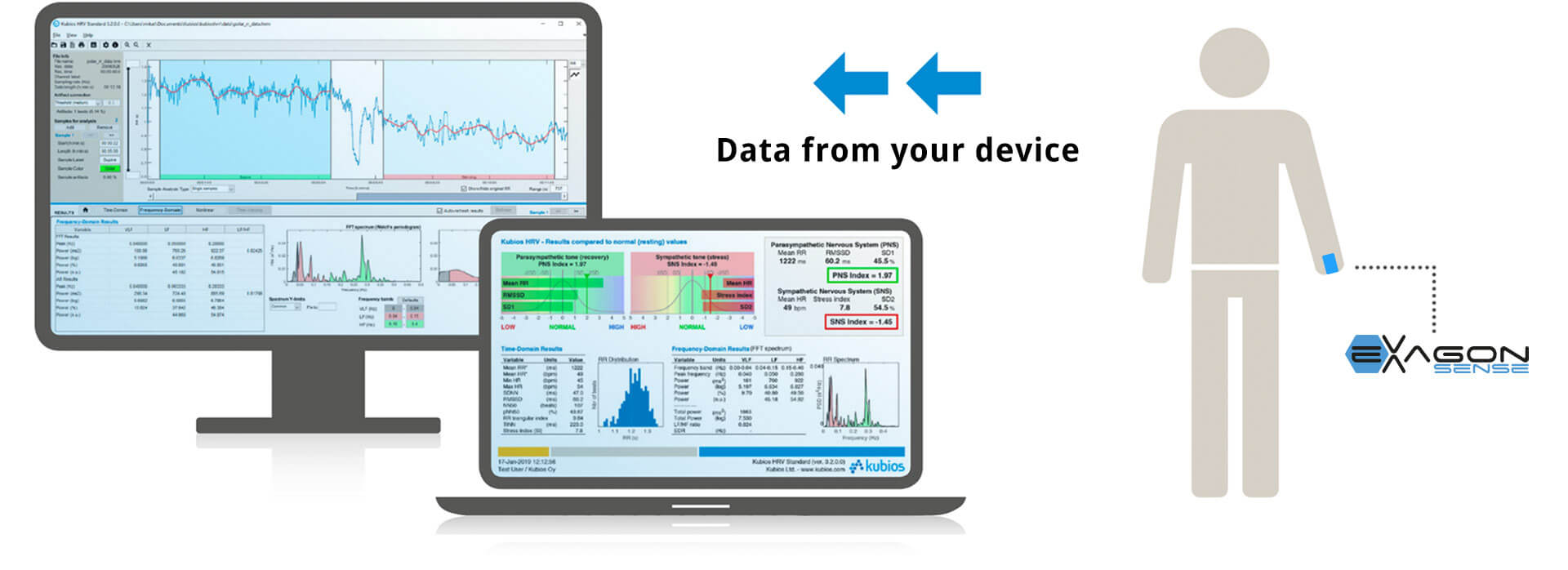 Exagon Sense combinato con KUBIOS può essere utilizzato come unità di monitoraggio per osservare e valutare il sistema nervoso autonomo e analizzare insieme alle applicazioni iMRS prime i miglioramenti nel tempo!